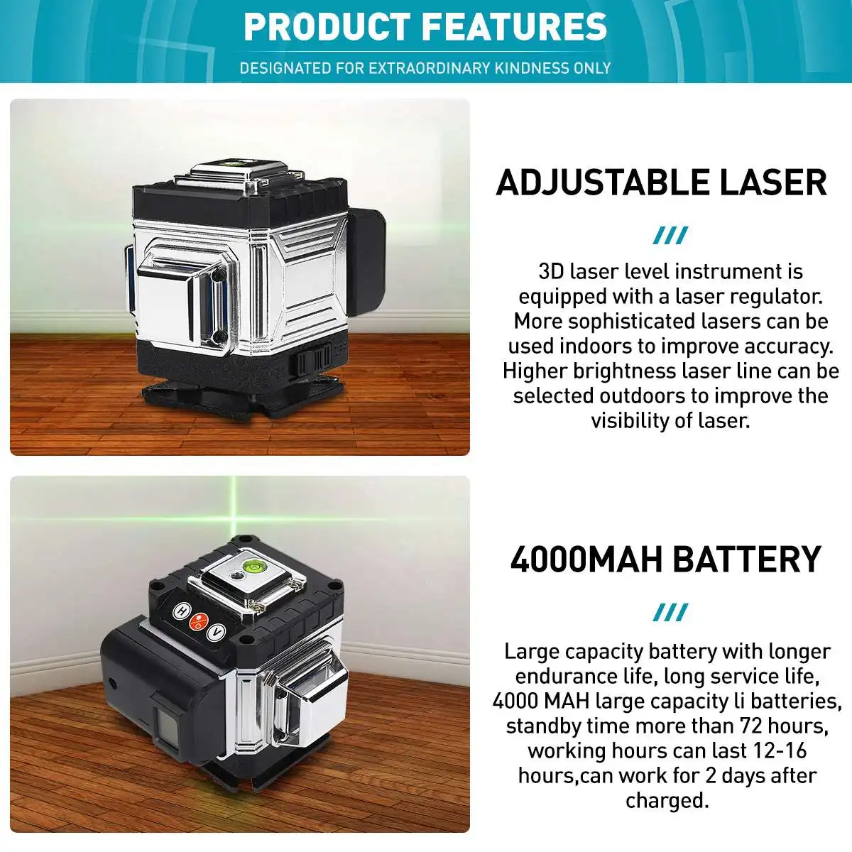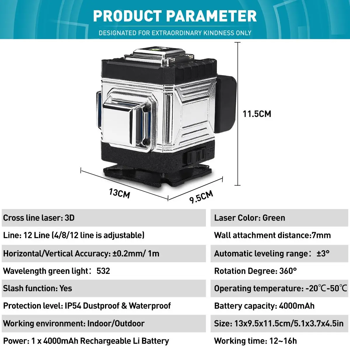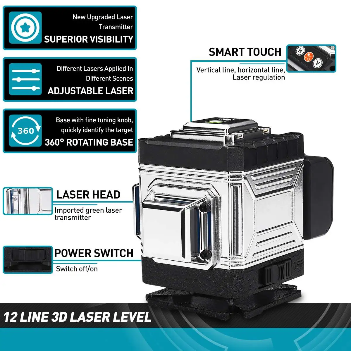Самонивелирующийся лазерный 3D уровень, горизонтальный и вертикальный, 1612 линий