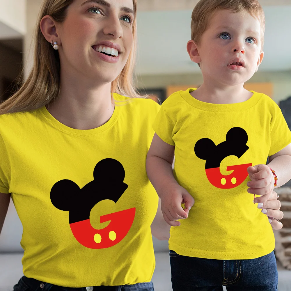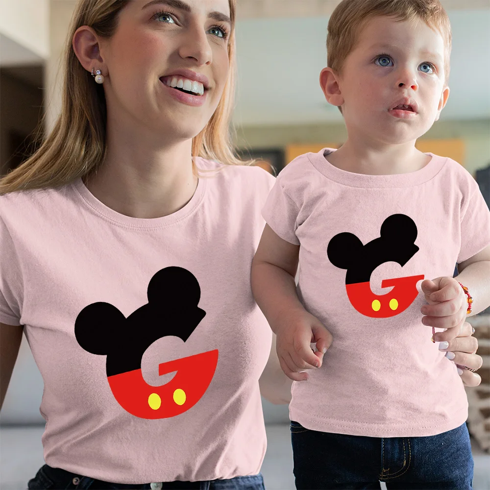 Футболка с алфавитом Disney, семейные комплекты одежды, мультяшная ...