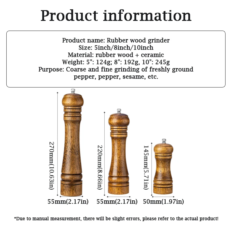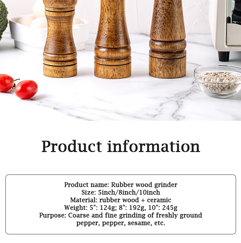 Мельница 5, 8, 10 дюймов для соли и перца, мельница из твердой древесины для специй и перца с прочной регулируемой Керамической мельницей, кухонные инструменты