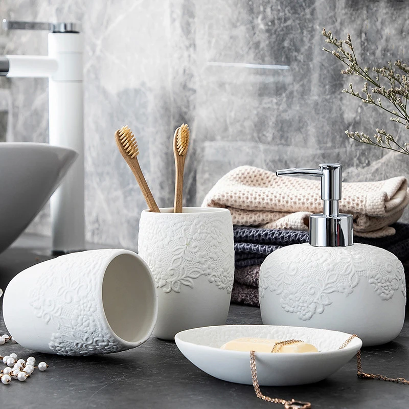 Набор аксессуаров для ванной комнаты, 4 шт., простая и креативная белая рельефная чашка для полоскания рта в европейском стиле, лосьон, посуда для ванной комнаты