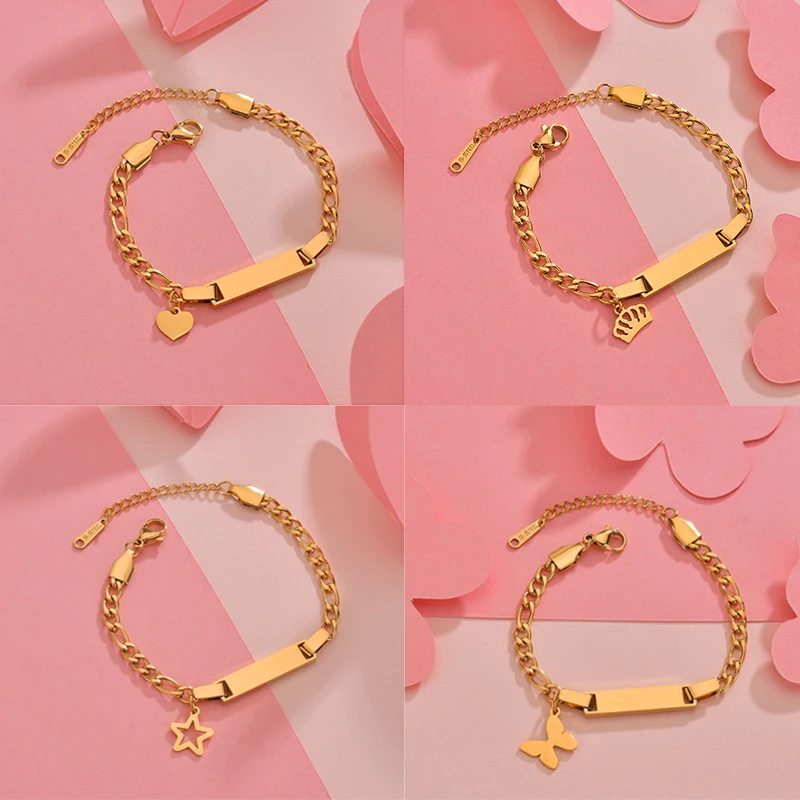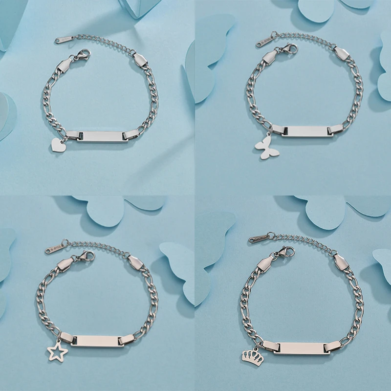Браслет Bluelory с гравировкой имени для детей, украшение из нержавеющей стали в форме сердца, короны, ювелирное изделие на заказ, подарок на день рождения для мальчиков и девочек