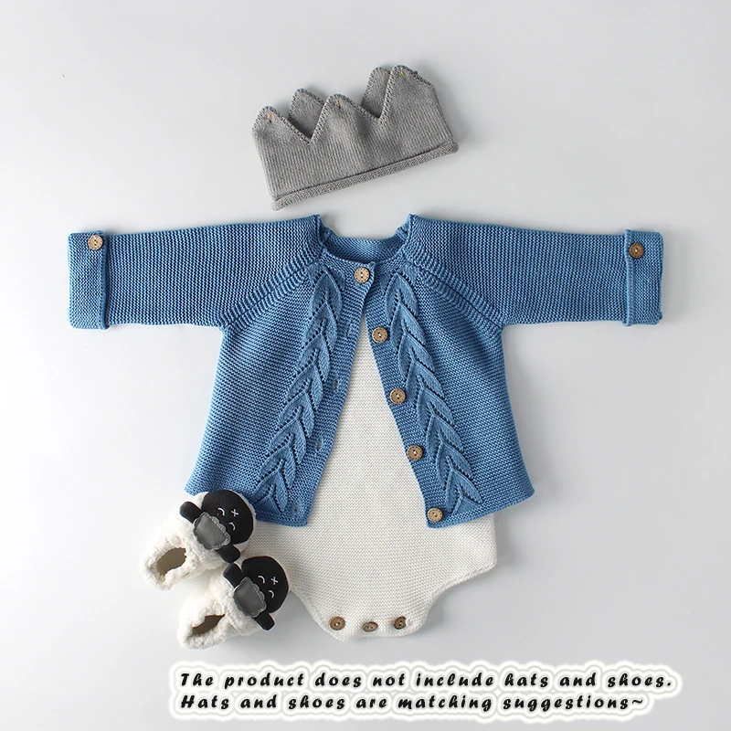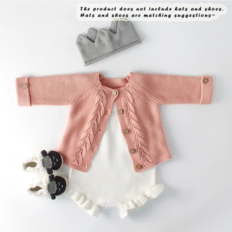 Весенне-осенний костюм для младенцев, вязаный кардиган в форме листьев + шерстяная вязаная одежда для ползания, комплект из 2 предметов для мальчиков и девочек