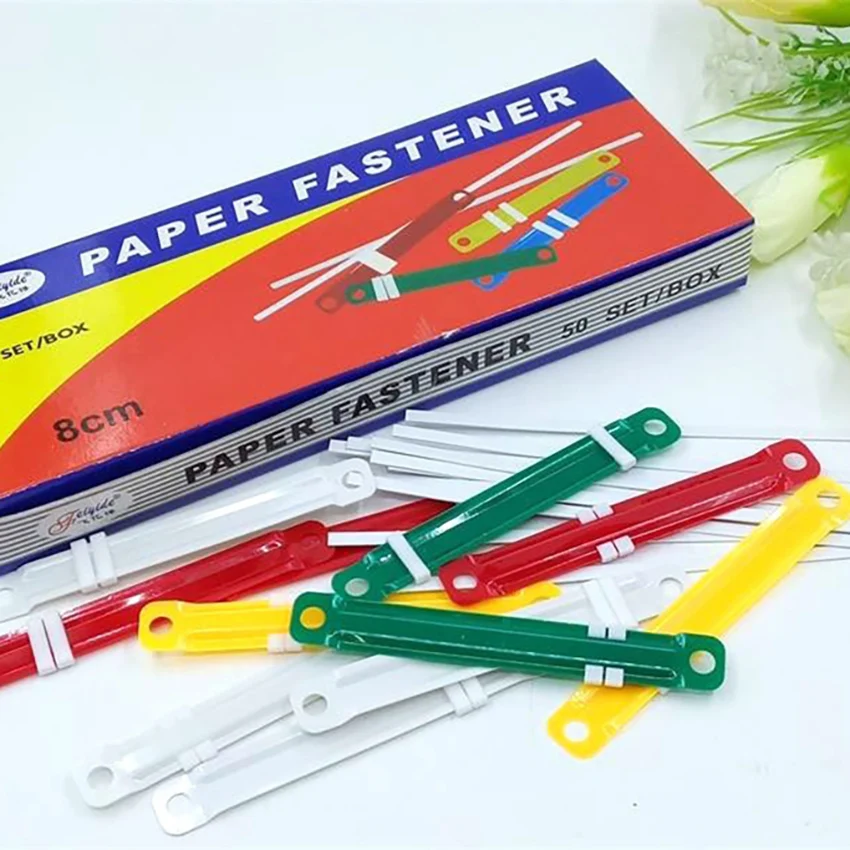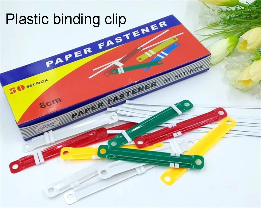 Описание изделия: цветные зажимы для переплета, 50 наборов в коробке, подходит для переплета с двумя отверстиями, легко организовать документы