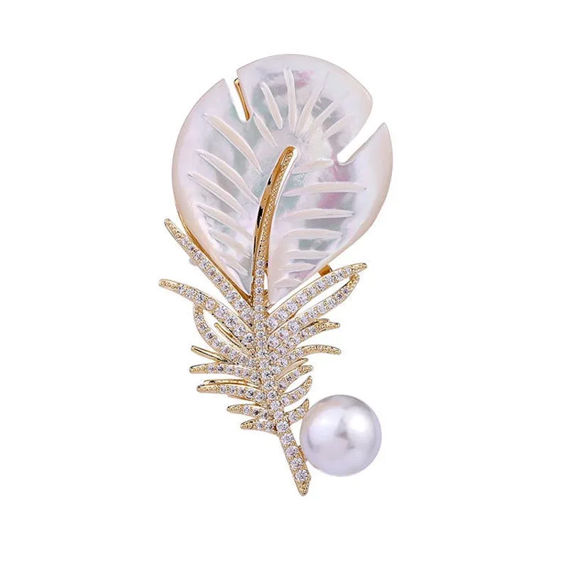 Женская Брошь с фианитом, брошь золотого цвета в форме пера, Ювелир...