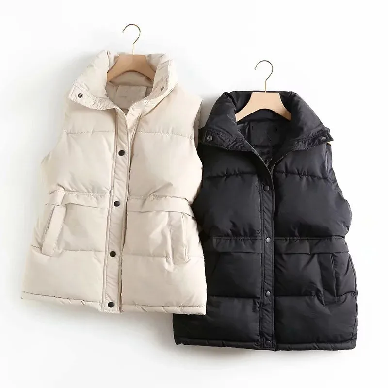 Зимний женский Свободный жилет 2021, женский ветрозащитный Теплый жилет без рукавов с воротником-стойкой и хлопковой подкладкой