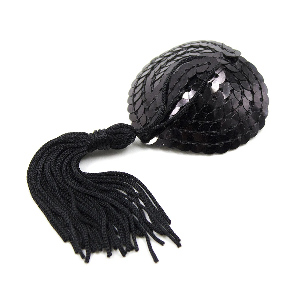 Наклейки на соски женские, черные, с блестками и кисточками, 1 пару...