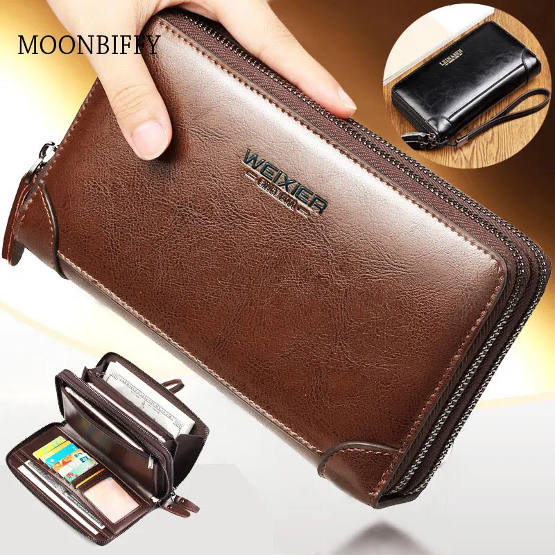 Мужской Длинный кошелек, мужской кошелек на двойной молнии с карманом для монет, мужской кошелек, повседневный деловой большой кошелек, мужской клатч