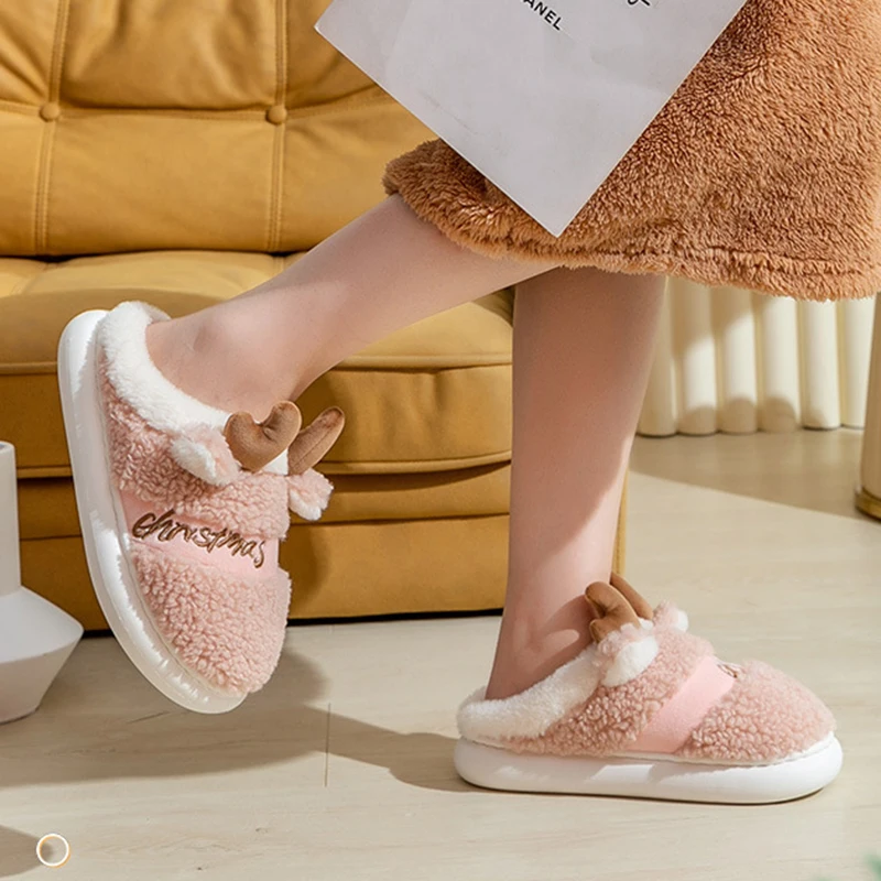 Тапки мужские и женские на толстой подошве, теплые домашние тапочки с рождественским оленем, мягкая плюшевая обувь на платформе для влюбленных, зима 2021