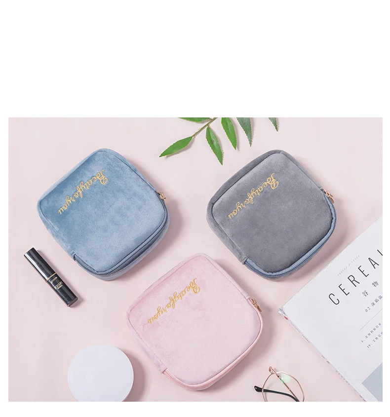 Модная бархатная косметичка для девочек, гигиеническая салфетка, су...