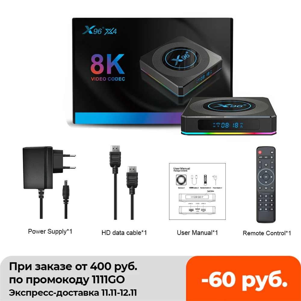ТВ-приставка 2,4G5G WIFI 1000M LAN Четырехъядерный 4 ГБ 32 ГБ 64 Гб ARM Cortex A55 телеприставка Android 11 X96 X4 Amlogic S905X4 медиаплеер