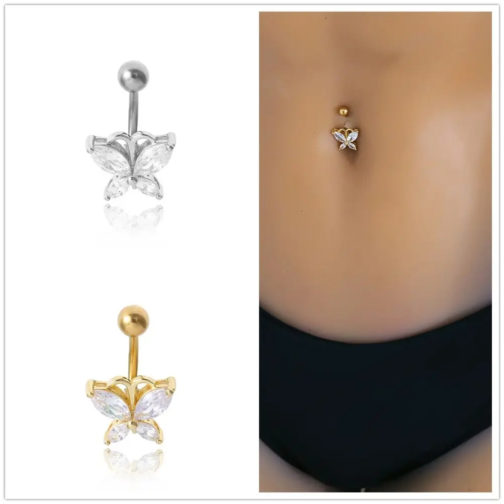 Новые серьги-бабочки для пупка, пирсинг для пупка, стальные кольца ...