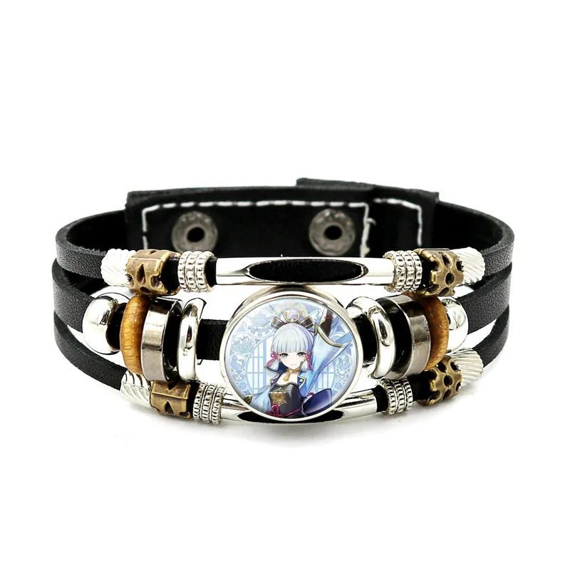 Аниме-браслеты Genshin для косплея игры аниме, ювелирные изделия для косплея для мужчин и женщин, многослойный Плетеный Кожаный Браслет унисекс в стиле панк ручной работы