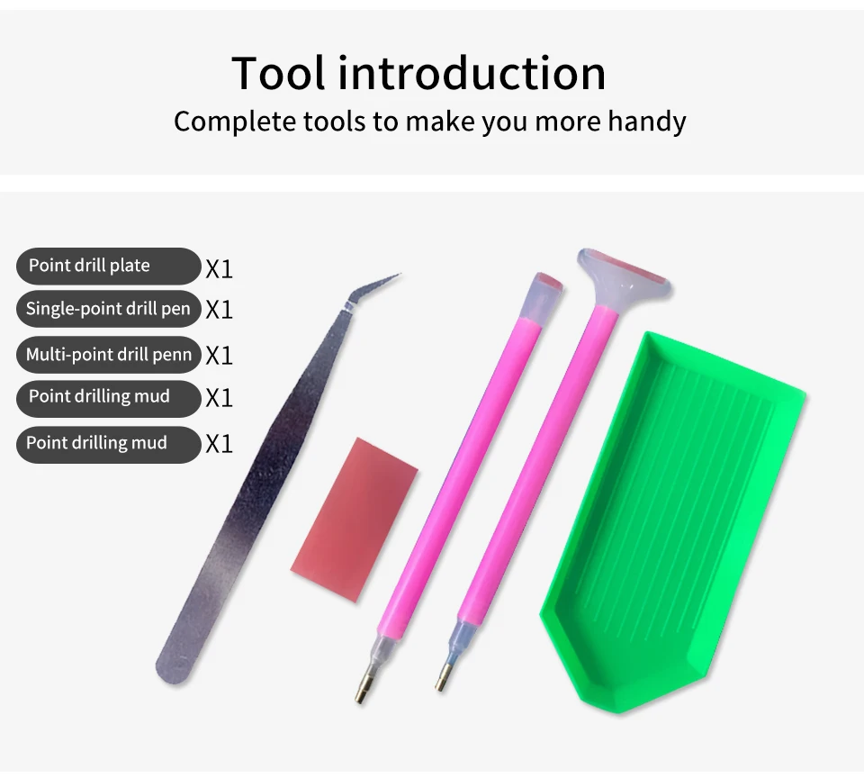 Посылка включает: Полностью сверлильный алмаз, напечатанная ткань, инструменты