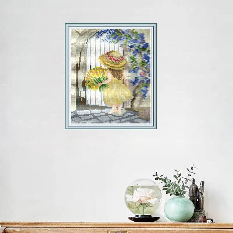 Девушка отправляет цветы 5D алмаз окрашенные полностью алмазные животные круглые алмазные мозаичные узоры украшение дома DIY подарок ручной работы