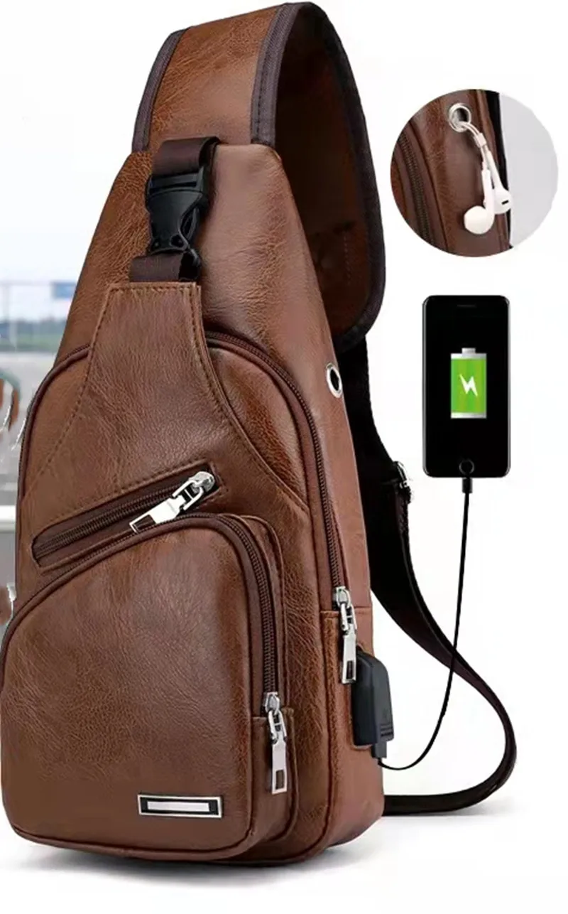 Нагрудная сумка с USB-разъемом, из искусственной кожи дюйма, для хр...