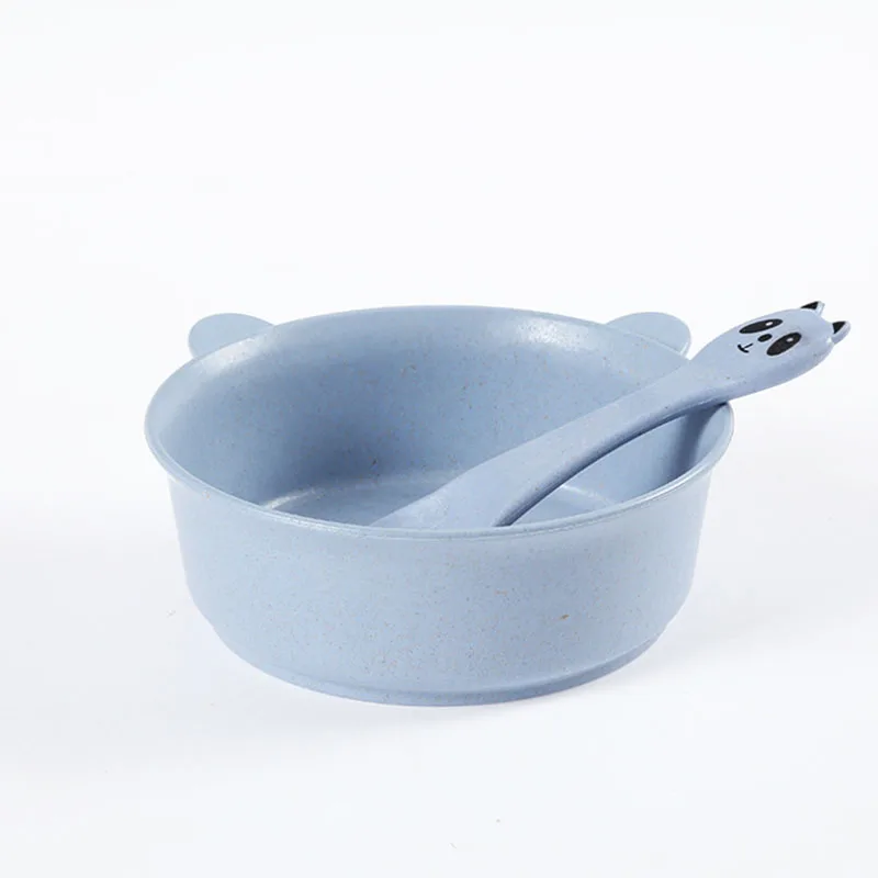 Детская посуда для кормления, мультяшная панда, детские блюда, Пшеничная солома, набор посуды для детского кормления, антигорячая детская тренировочная чаша, ложка