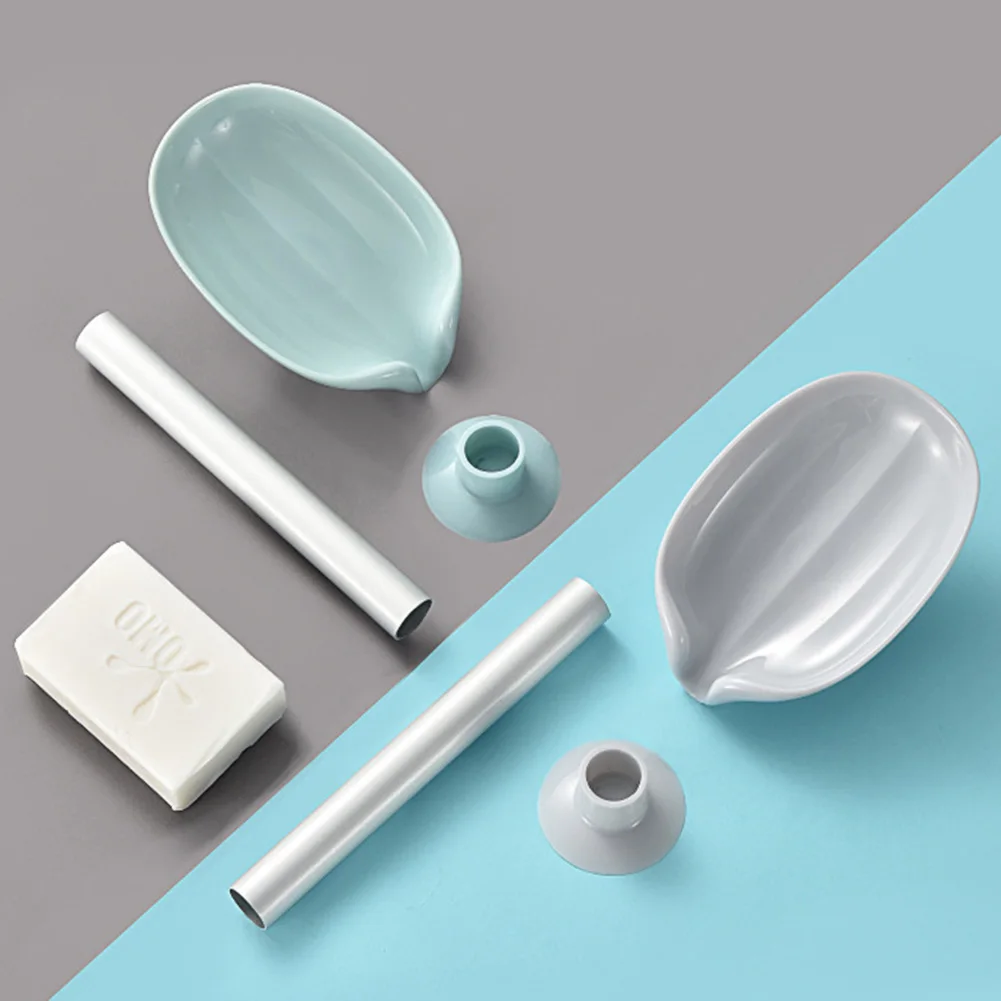Держатель для мыла в форме листа, футляр для мыла в ванную комнату, с присоской, поднос для душа, аксессуары для ванной комнаты
