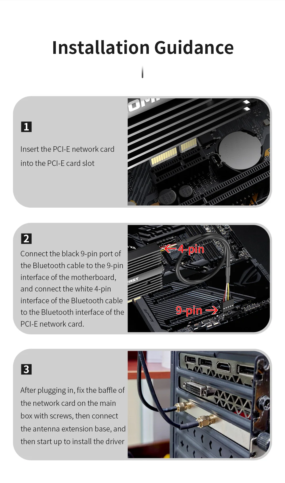 Интерфейс: PCIE-16X/PCIE-4X/PCIE-8X/PCIE-1X; Usb-порт для BT