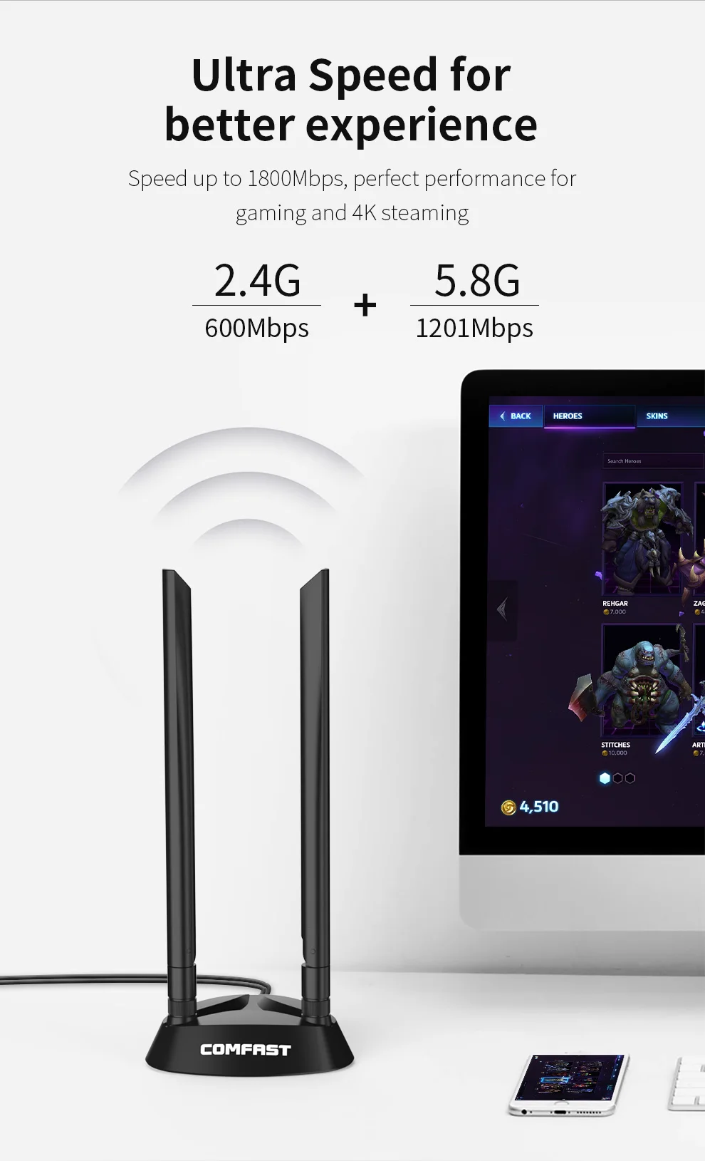 Принимает сигнал WiFi6 и использует новый стандарт WiFi 802.11ax, так что вы можете играть в онлайн-игры стабильно и плавно, не опуская линию