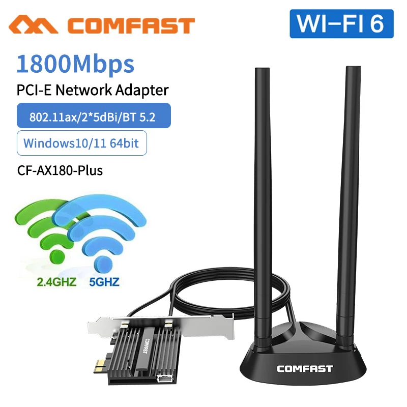 AX180 PLUS Wifi 6 карта:MT7921 2 * 5dBi 1800 Мбит/с Bluetooth-Совместимость с операционными 5,2 Win10/11(64bit) Поддержка MU-MIMOС тепловыделением и магнитным основанием подвижная Базовая антенна