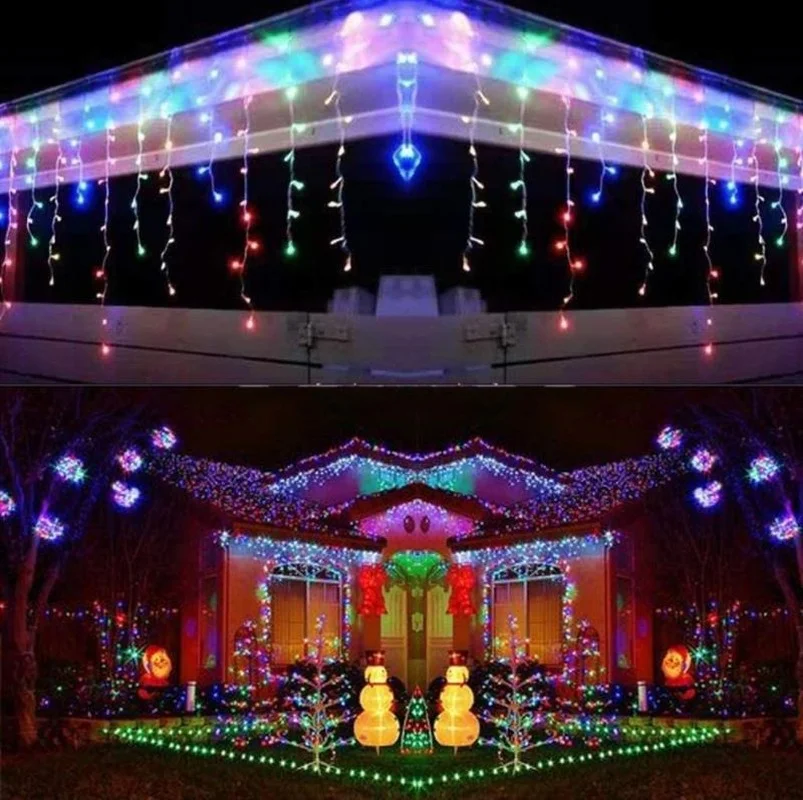 СВЕТОДИОДНАЯ Гирлянда в виде сосулек светильник освещение, Новогодн...