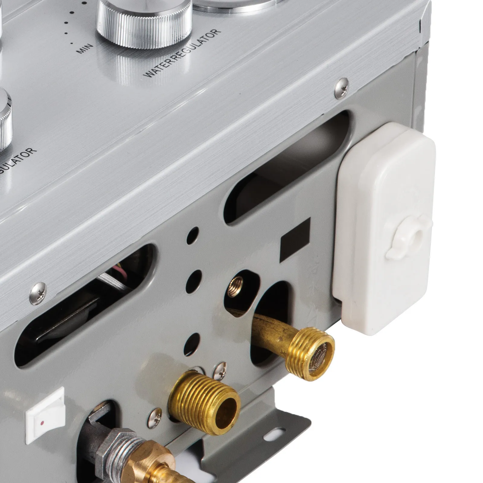 Удобные и изысканные деталиИзысканные устройства считаются в этом продукте: фильтрующая сетка, Стандартный G1/2 "медный соединитель для входа и выхода воды, трубка для газа, батарейный отсек d-типа, И оловянный медный резервуар для воды для безопасного использования и долговечности.