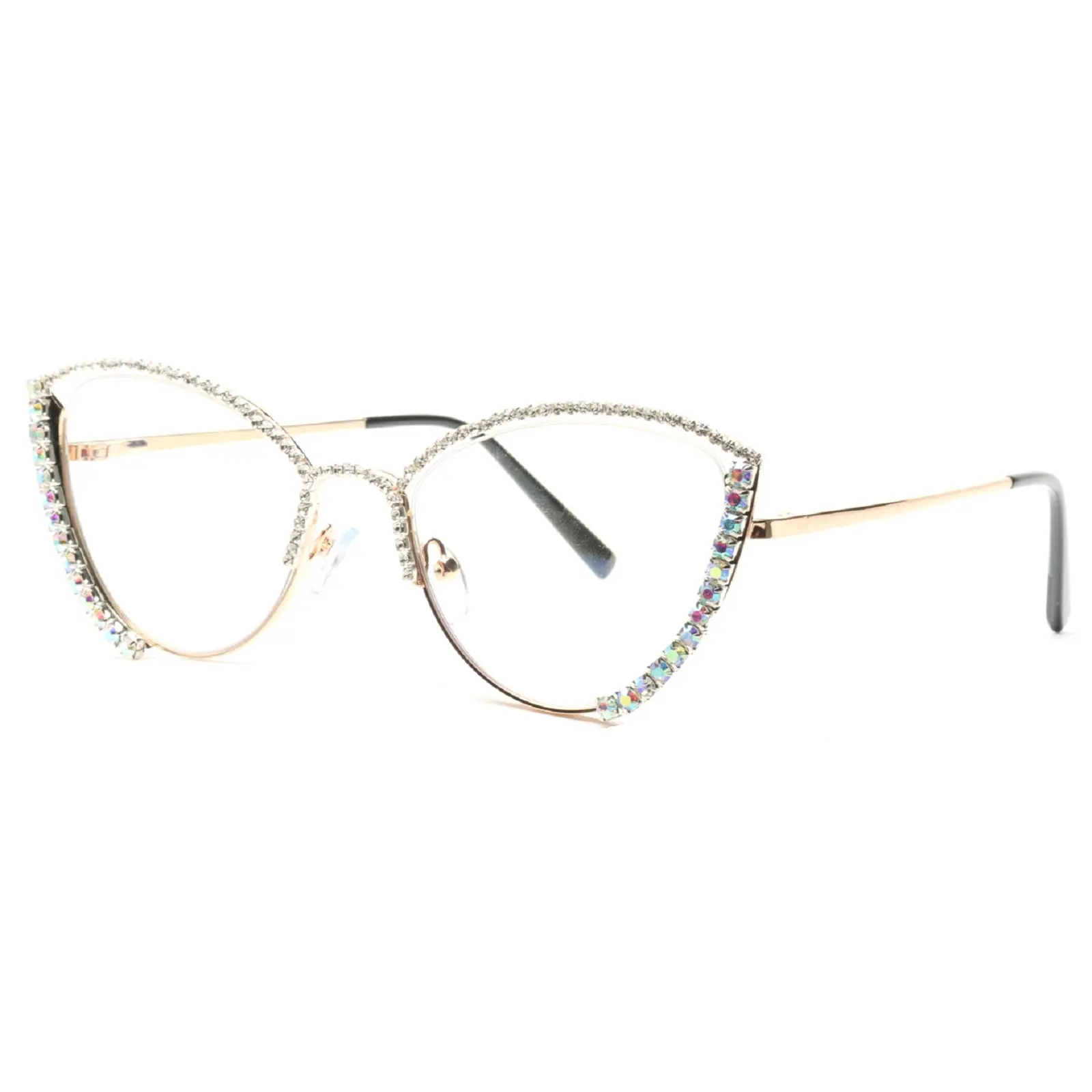 Алмазные очки для чтения для женщин, металлические оверсайз очки кошачий глаз, роскошный бренд Стразы, декоративные очки для дальнозоркости NX