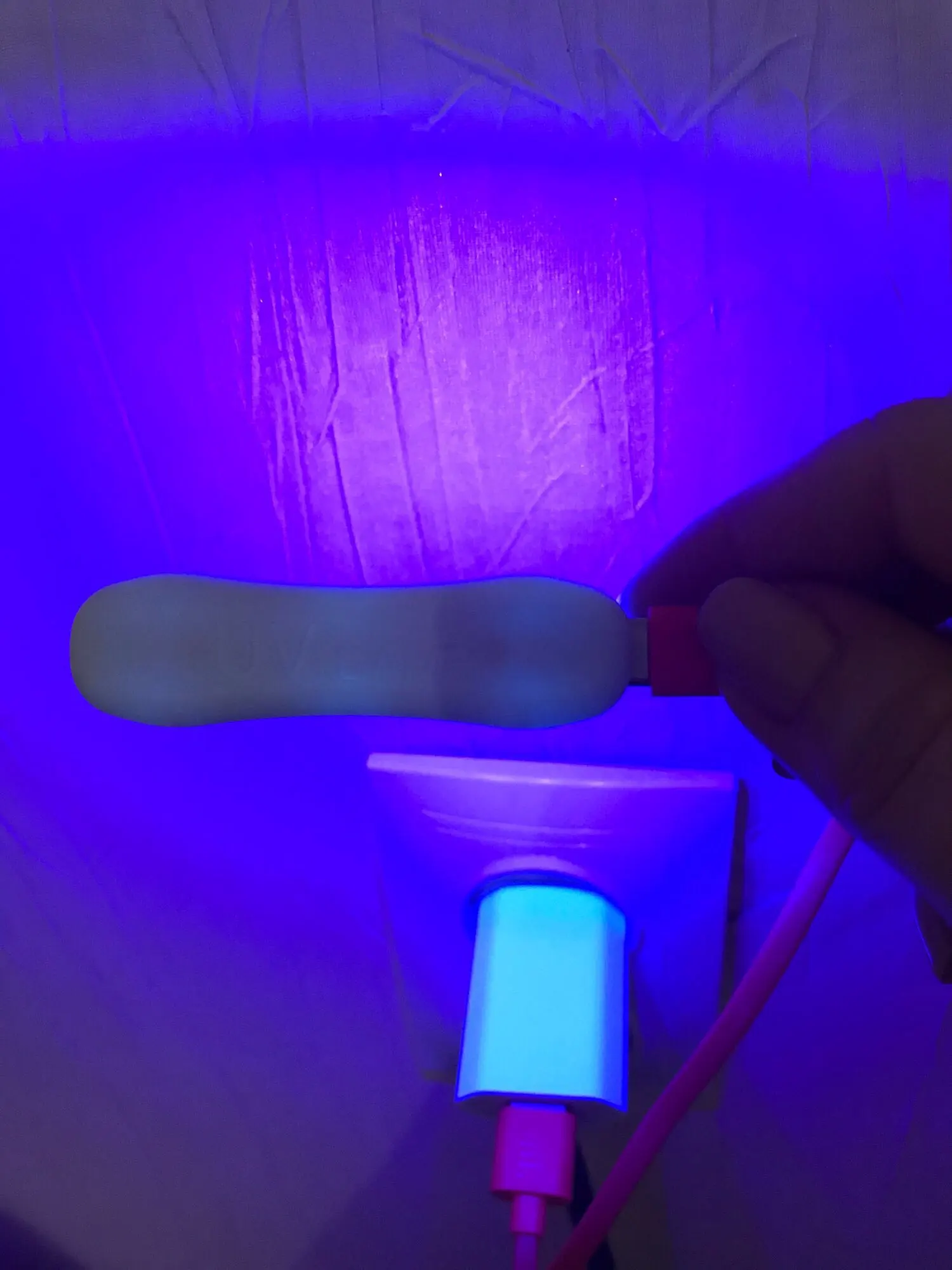 Доставка пришла очень быстро, за 2 недели. Купила две. Они в упаковке. К мобильному телефону еще не прикреплены, но все чувствуют себя хорошо. Показанная УФ-лампа белая, а не синяя, но это лишь небольшая деталь. Вам необходимо подключить УФ-лампу к боковой стороне зарядного устройства телефона. В противном случае свет не включится.