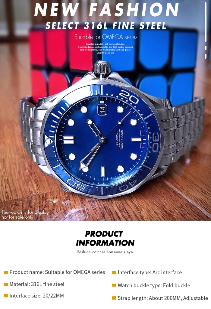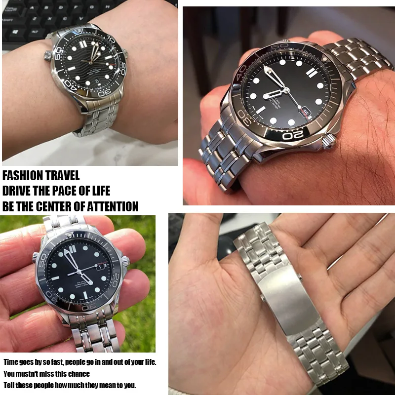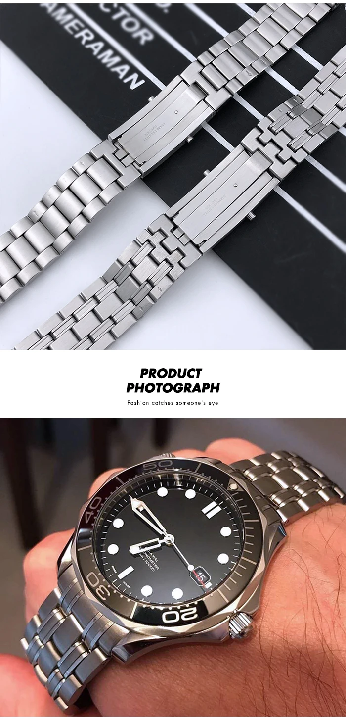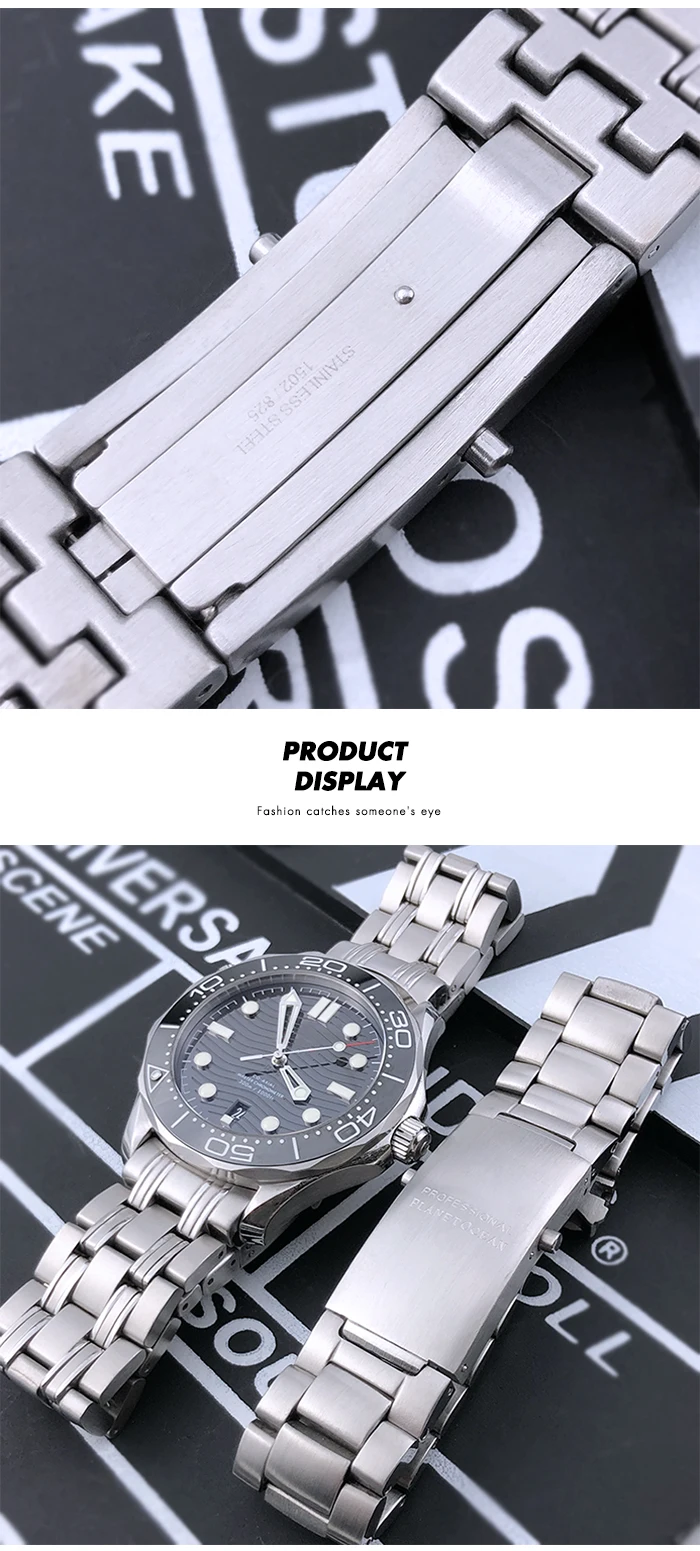 Ремешок из нержавеющей стали 316L с изогнутым концом для часов, 20 мм 22 мм, подходит для часов Omega Seamaster, планета, океан, дайвер, серебро 300 пробы, однотонный ремешок для часов, инструмент