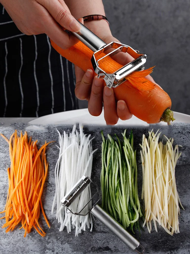Многофункциональная Овощечистка, кухонный измельчитель с двойной головкой, для резки овощей, огурцов, моркови