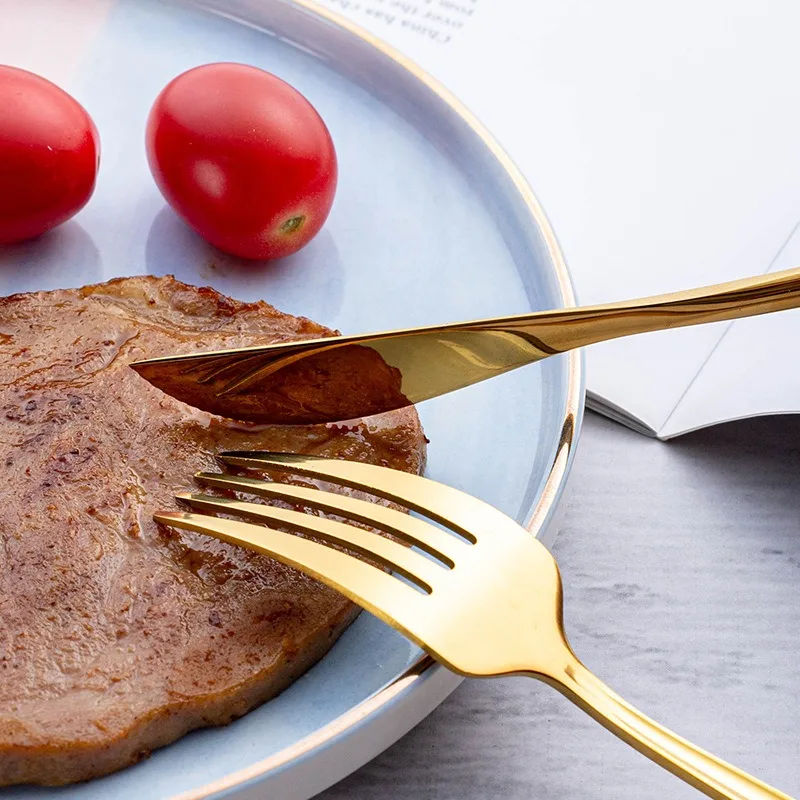 Золотистая Глянцевая круглая посуда Hanglde из нержавеющей стали, столовая ложка, вилка, нож, кофе, десерт, столовая посуда, домашняя вечевечерние, кухонные инструменты