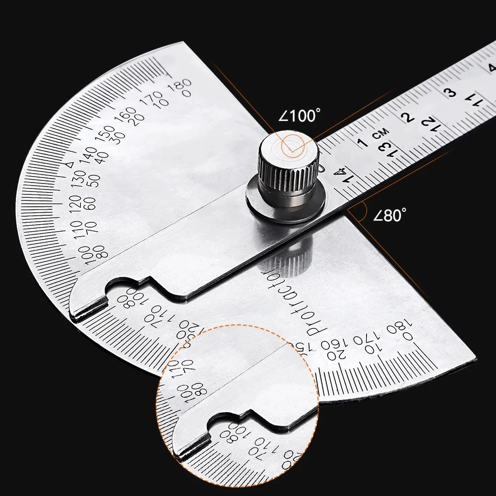Транспортир из нержавеющей стали с круглой головкой поворотное Угло...