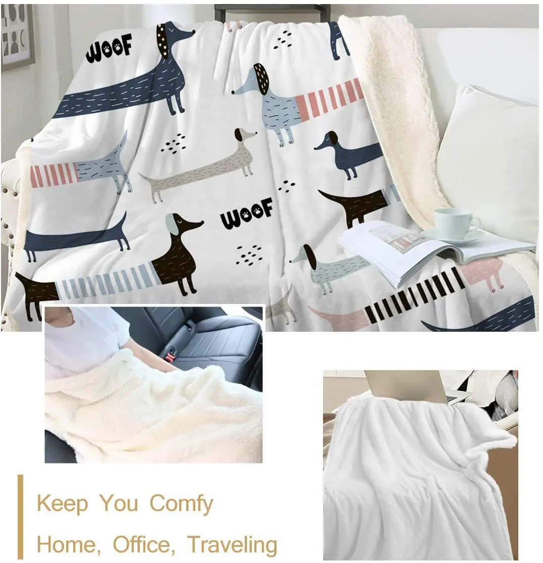 Одеяло шерпа для влюбленных, милое Флисовое одеяло в виде таксы, со...