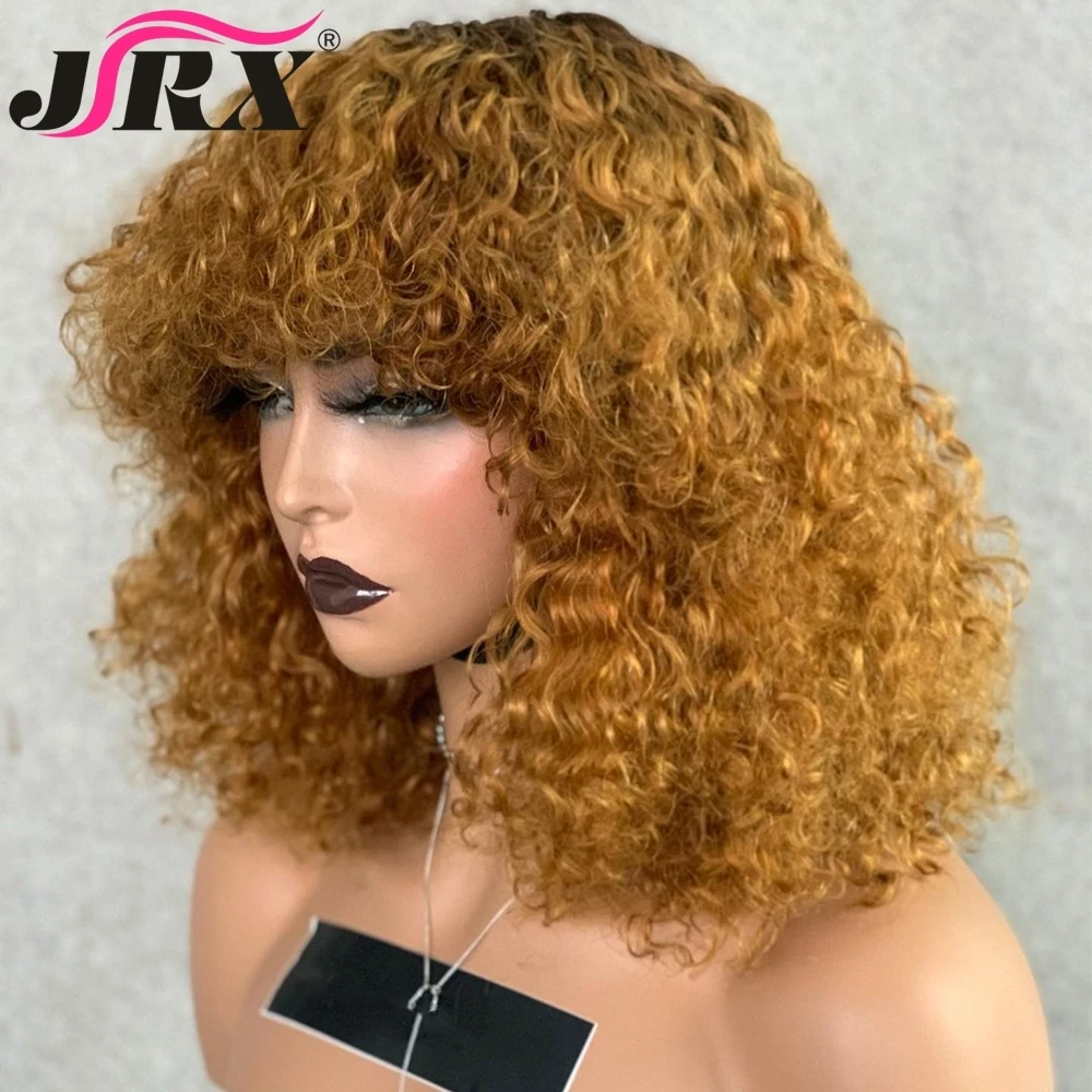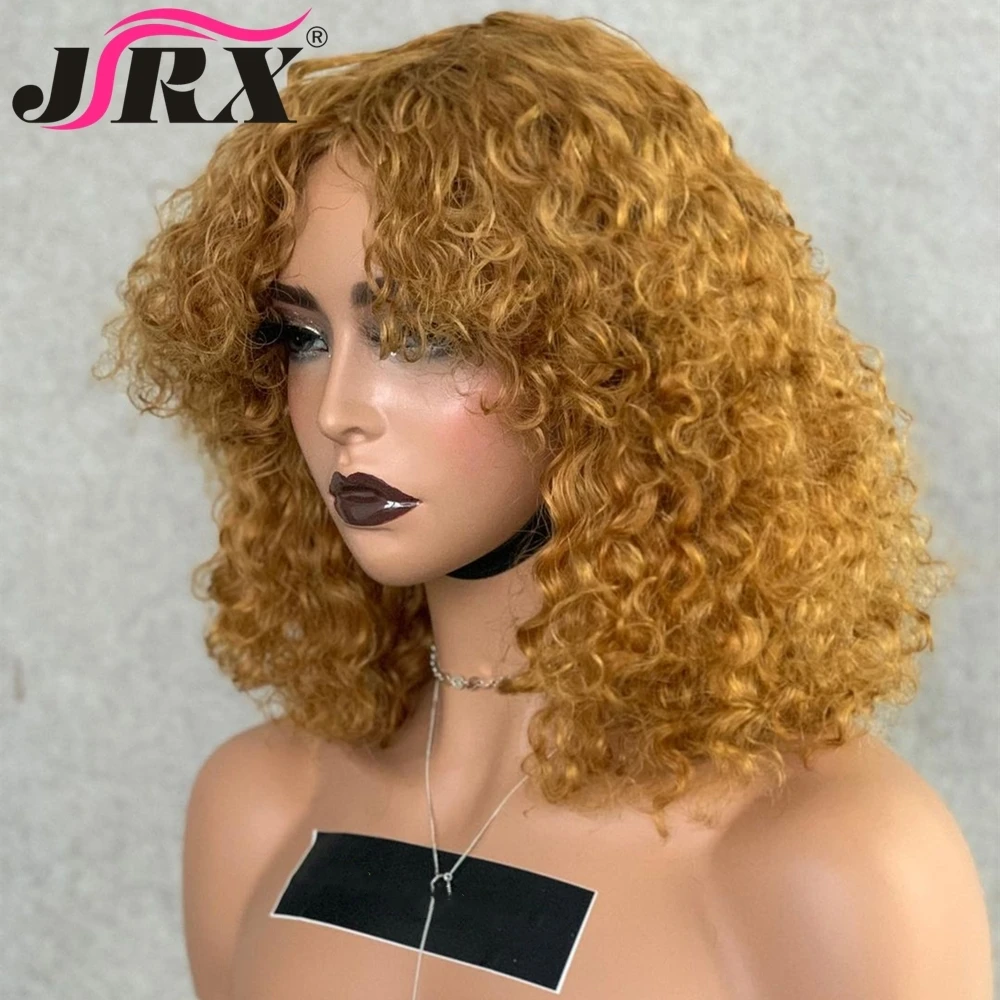 Короткие кудрявые человеческие волосы парики с челкой медовый блонд цветные малазийские полные машины парики для женщин Джерри Кудрявые волосы Remy
