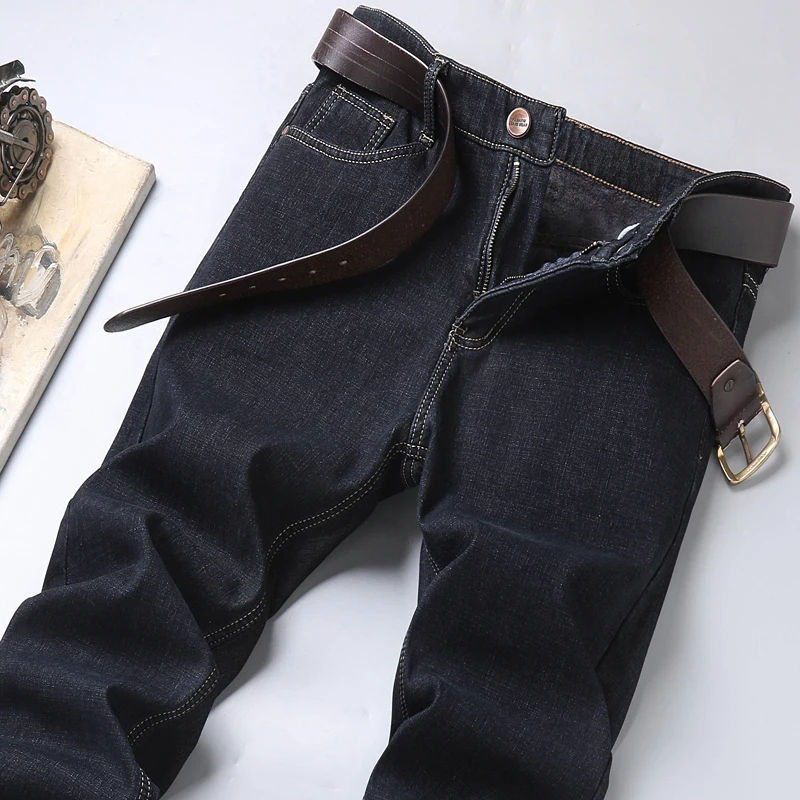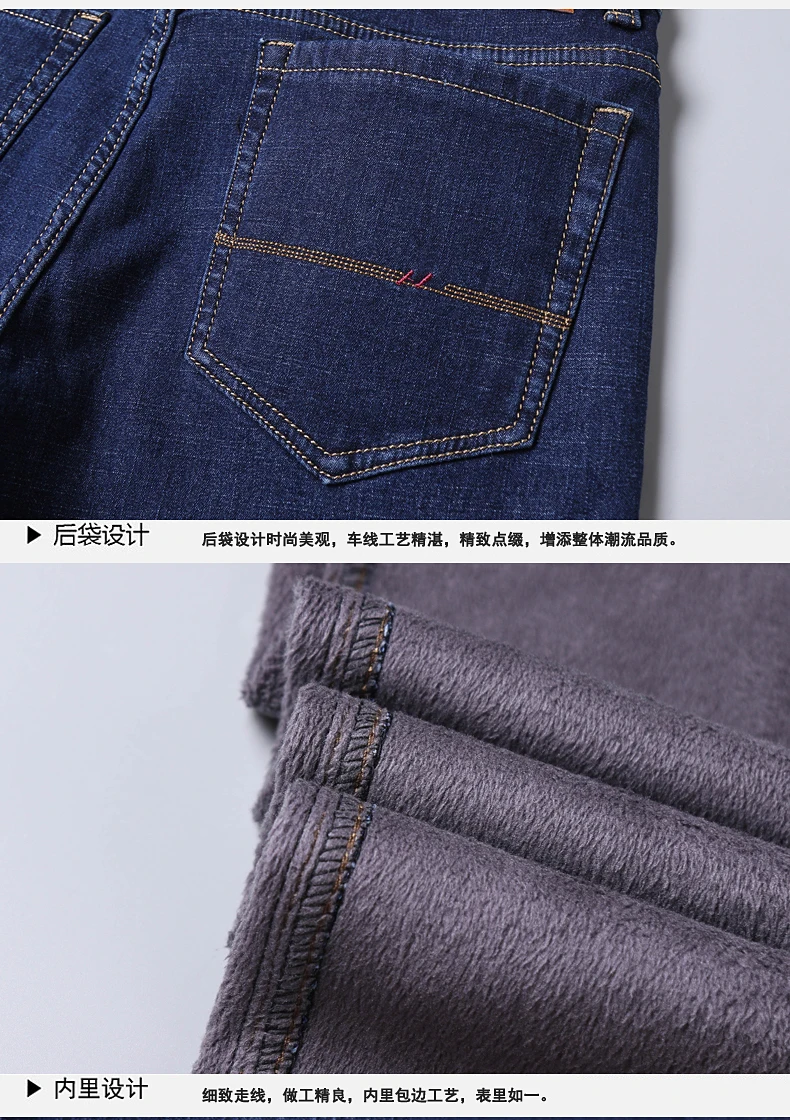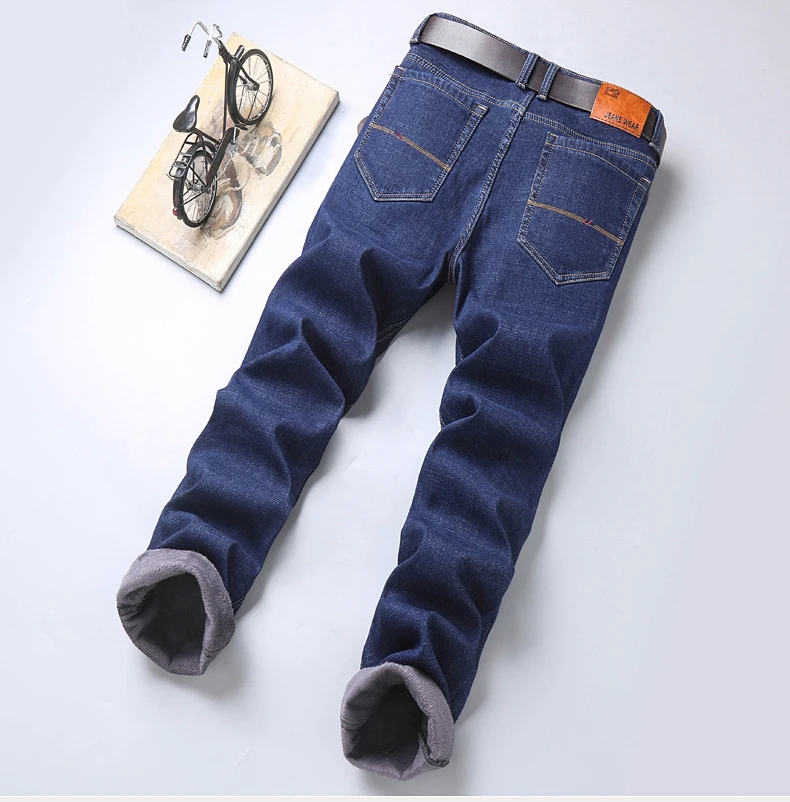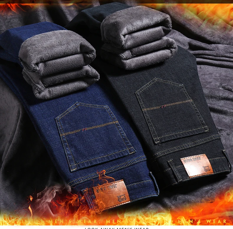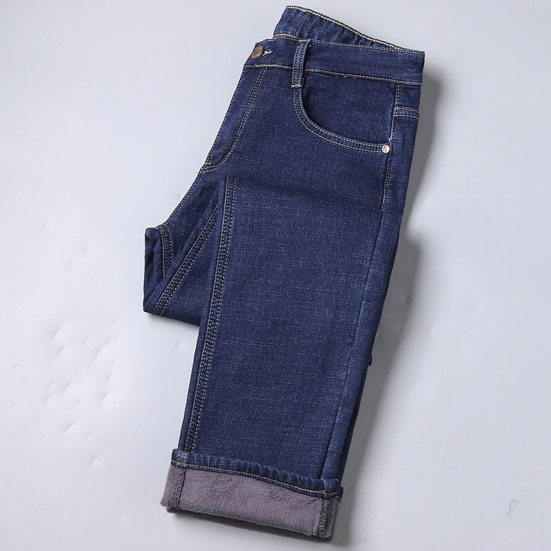 Джинсы мужские флисовые стрейчевые, брендовая одежда, теплые облегающие брюки из денима, деловой стиль, черные синие, 28-40, зима
