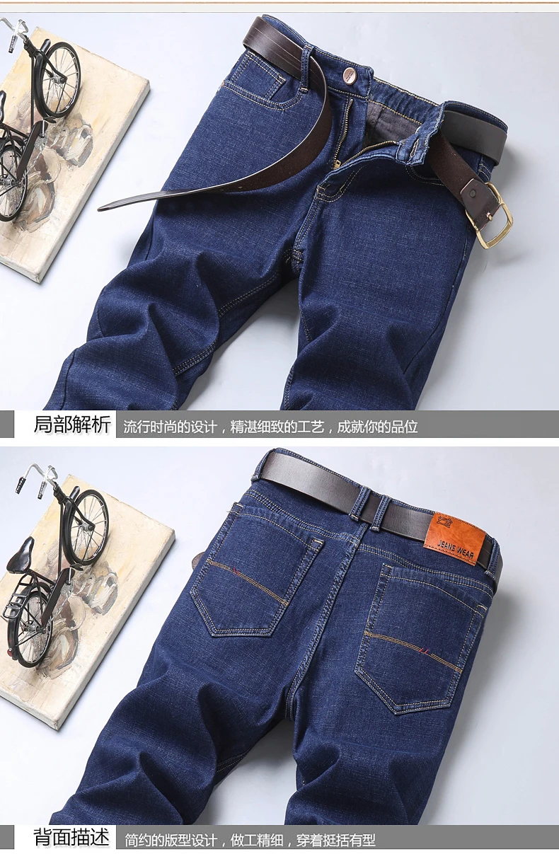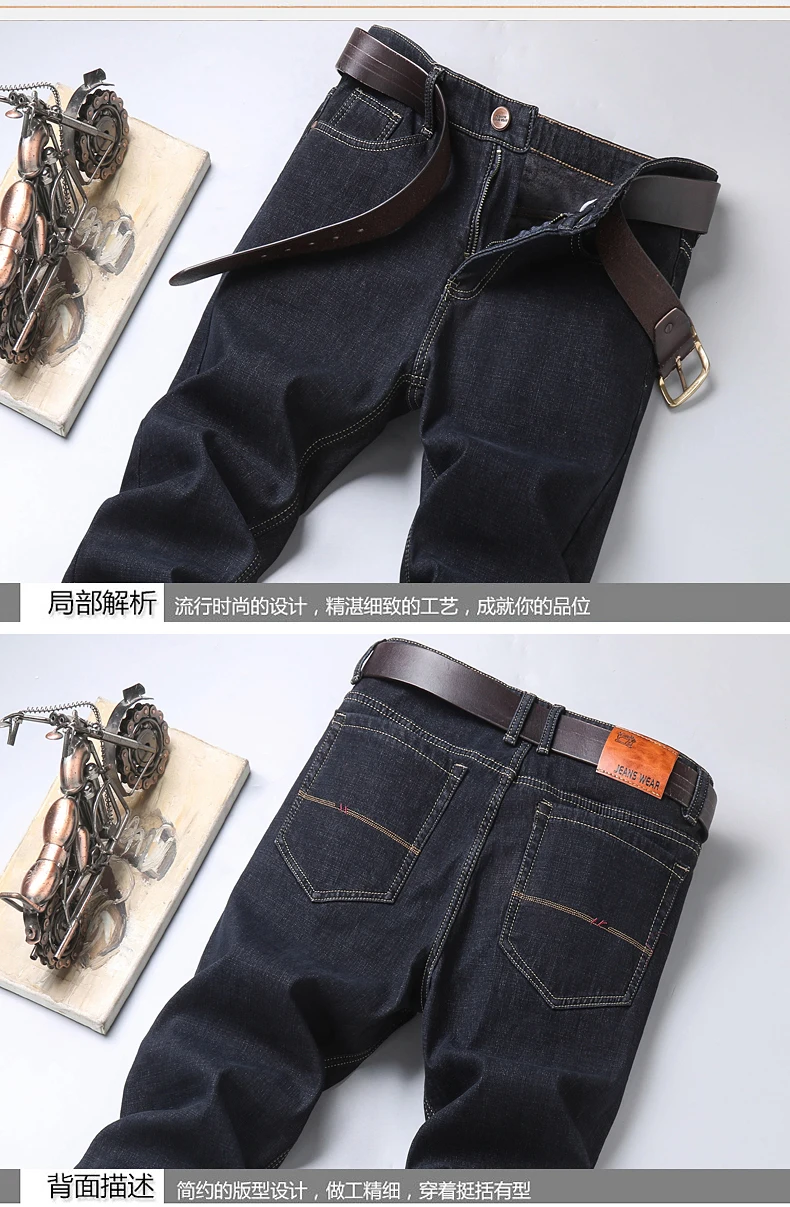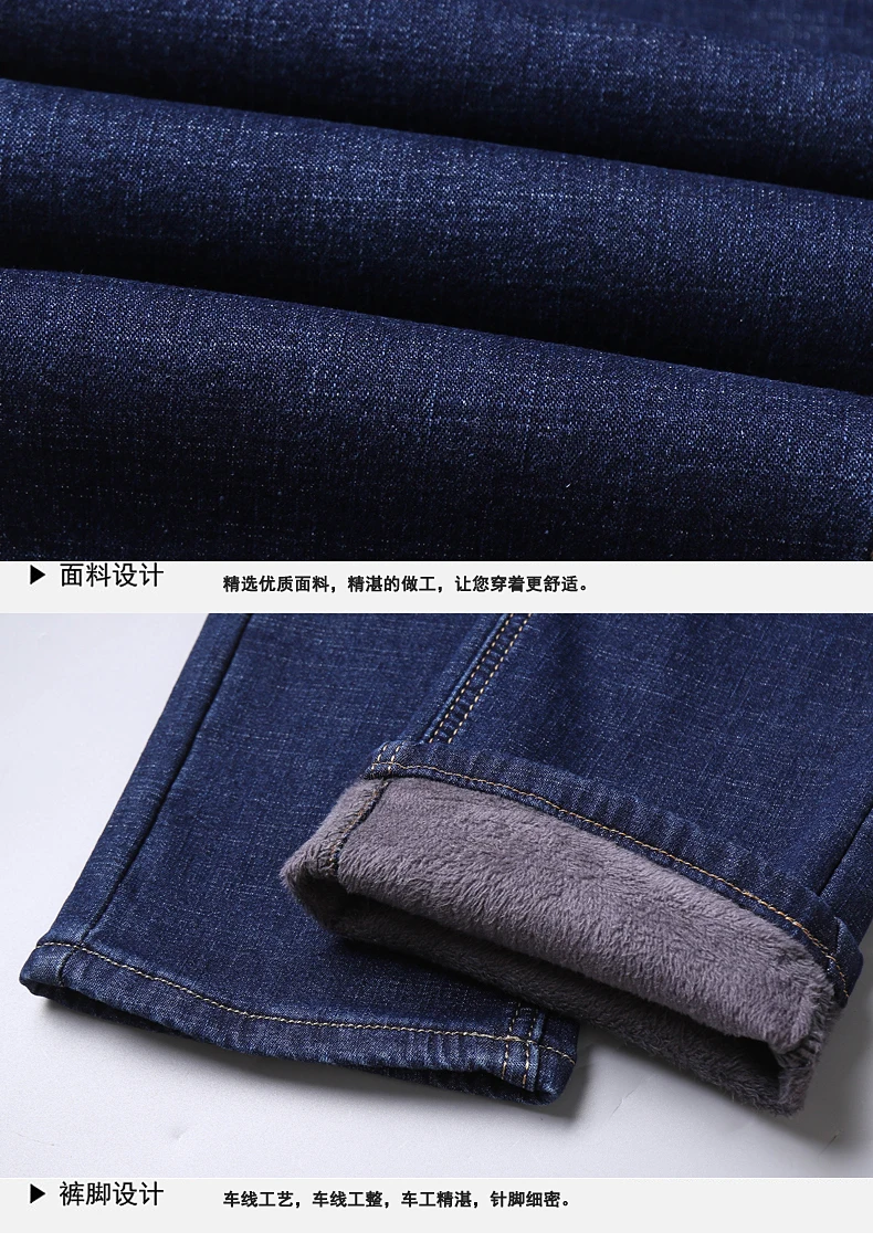Джинсы мужские флисовые стрейчевые, брендовая одежда, теплые облегающие брюки из денима, деловой стиль, черные синие, 28-40, зима
