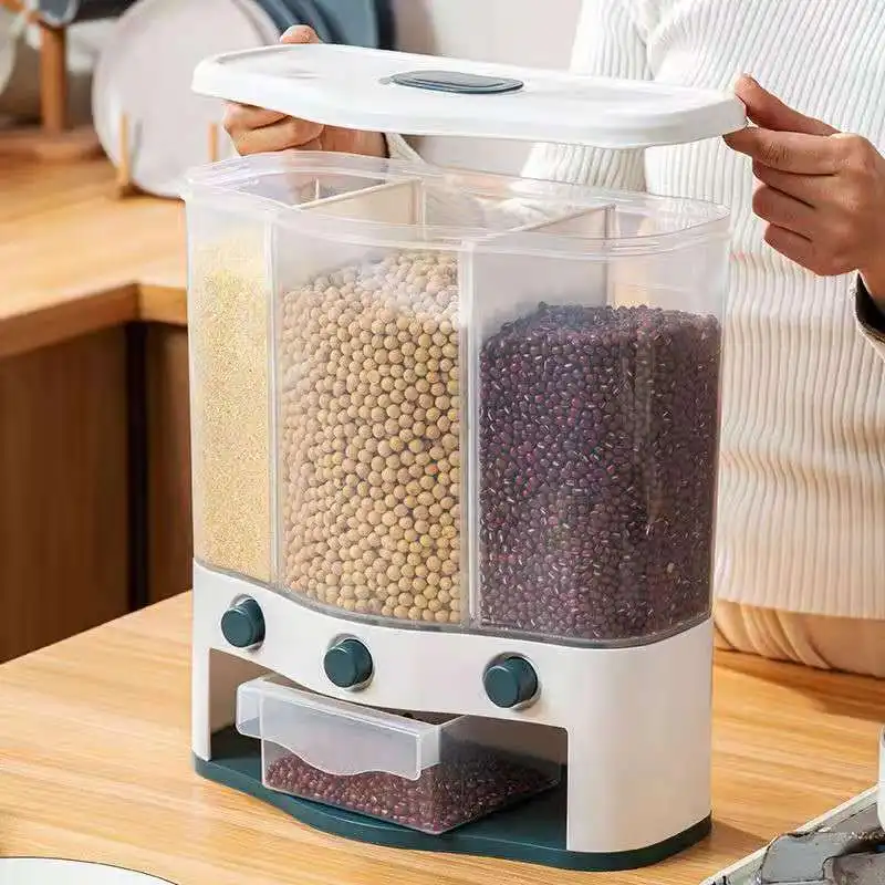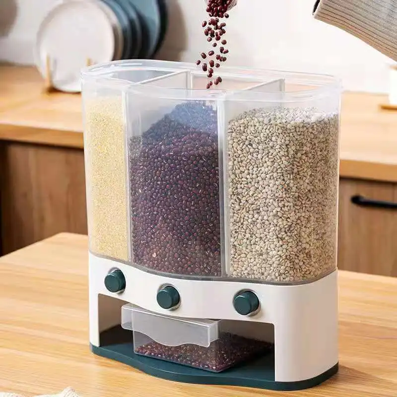 Дозатор для риса, настенный кухонный контейнер-ведро для сухой пищи...