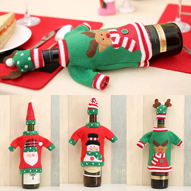 Рождественский набор для украшения винной бутылки, чехол для бутылк...