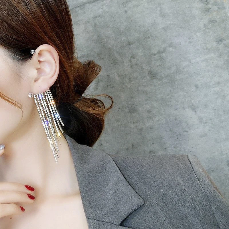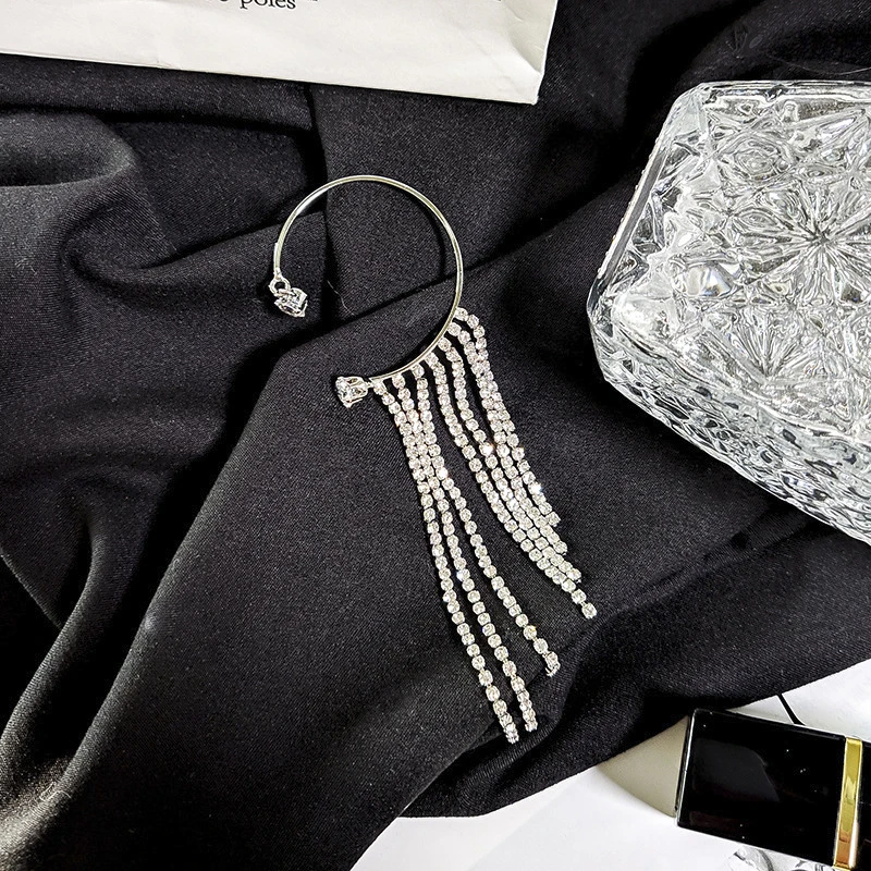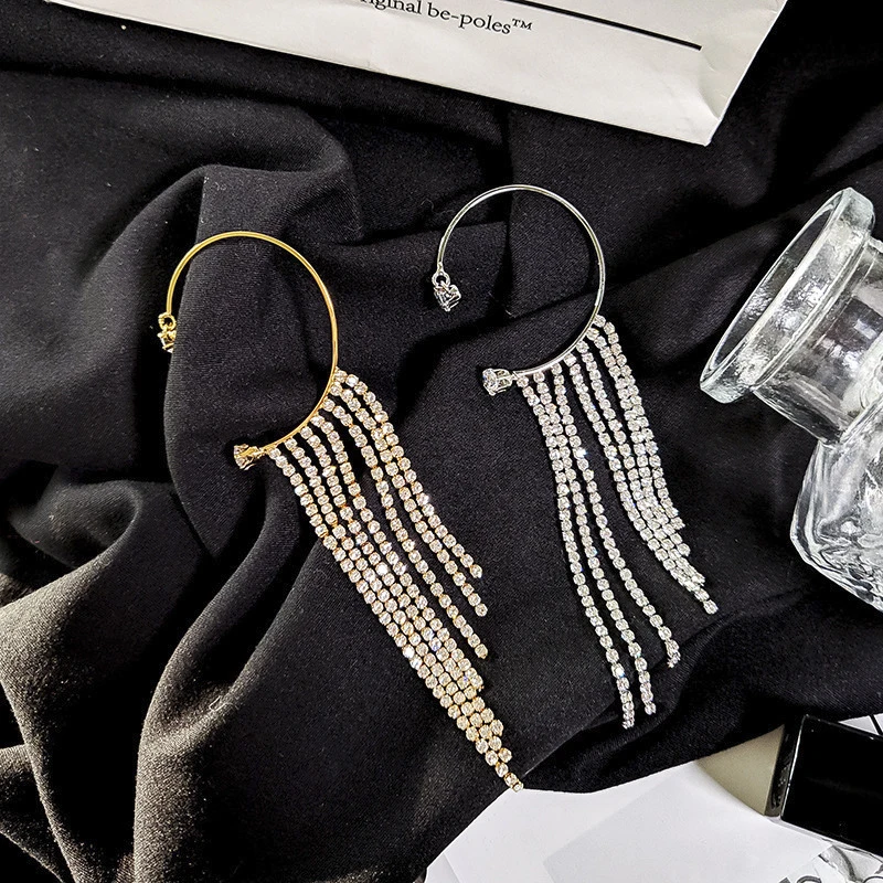 Модные Роскошные циркониевые длинные серьги-каффы с кисточками для ...