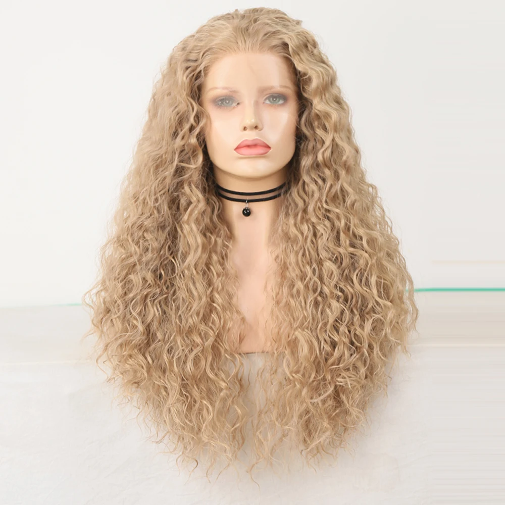Парик Харизма пепепельный блонд, парики на синтетических сетках спереди для женщин, свободная часть, длинный афро вьющийся парик, термостойкие волосы, парики на сетке