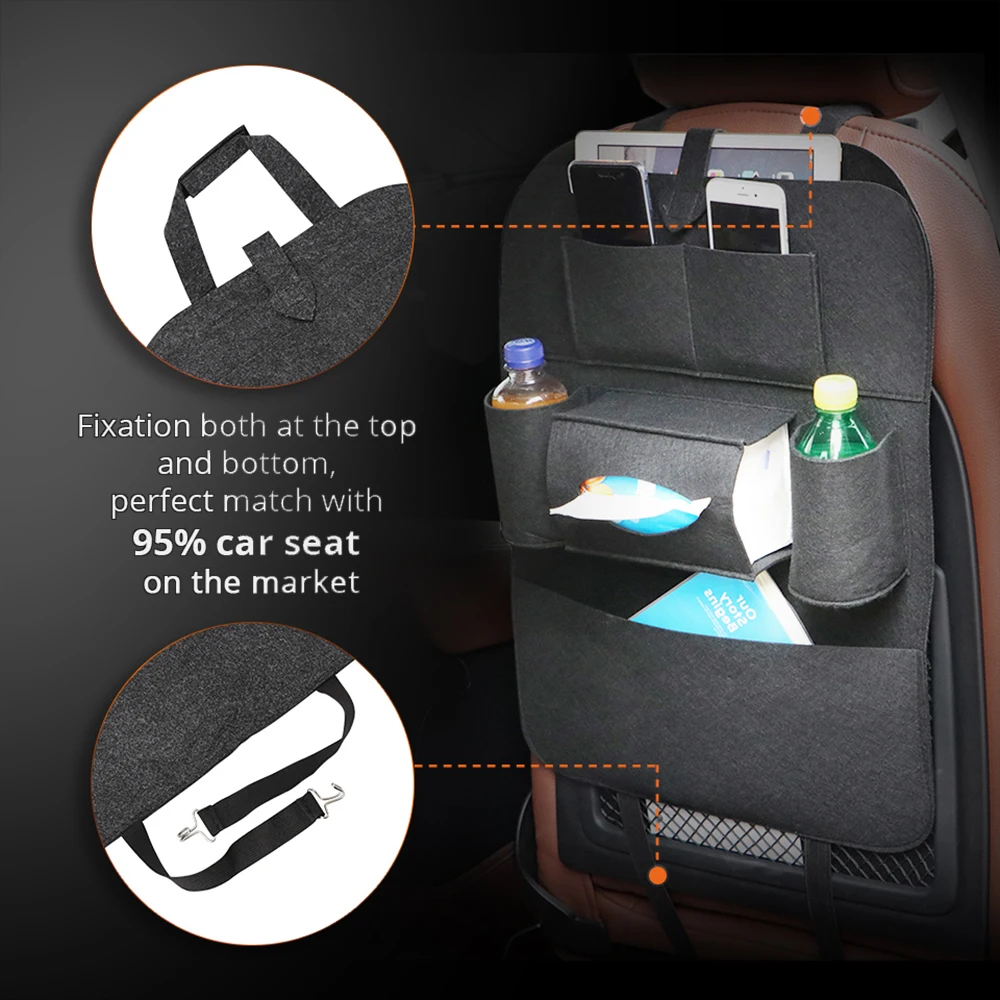 4. Мы используем экологически чистый войлок, нетоксичный, прочный, износостойкий и долговечный материал, чтобы сделать наш детский Органайзер заднего сиденья, который очень подходит для людей с детьми и домашними животными.
