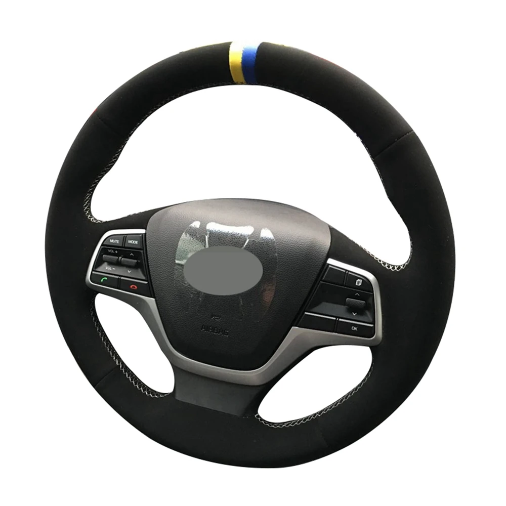 Сшитый вручную черный замшевый красный маркер Чехлы рулевого колеса...
