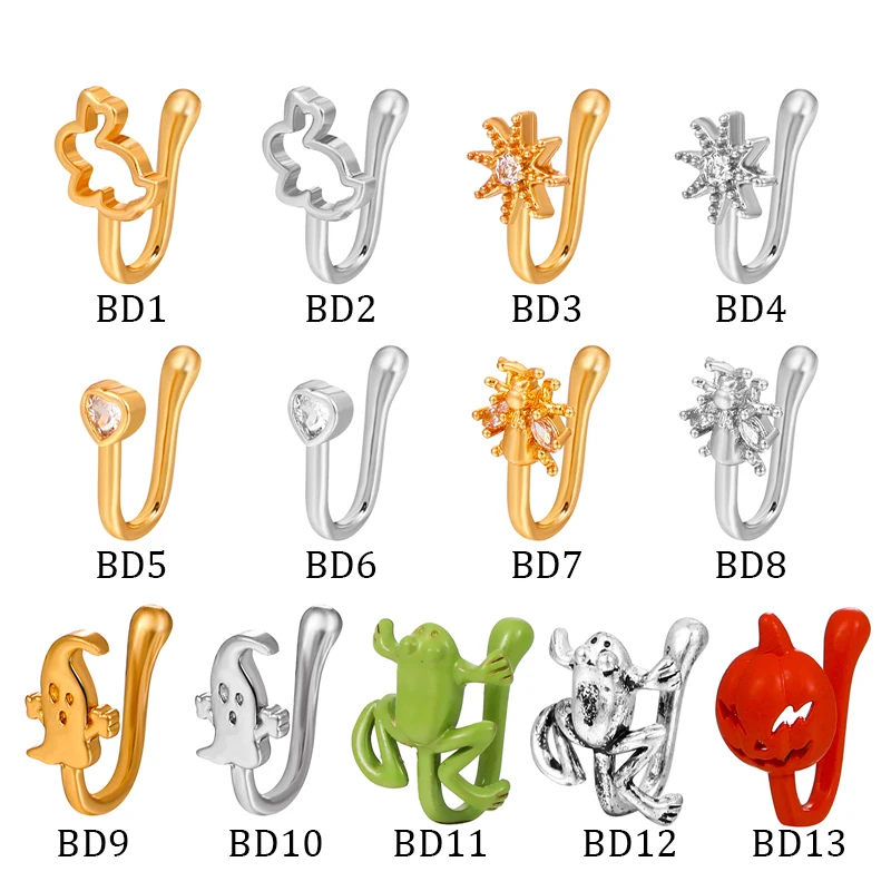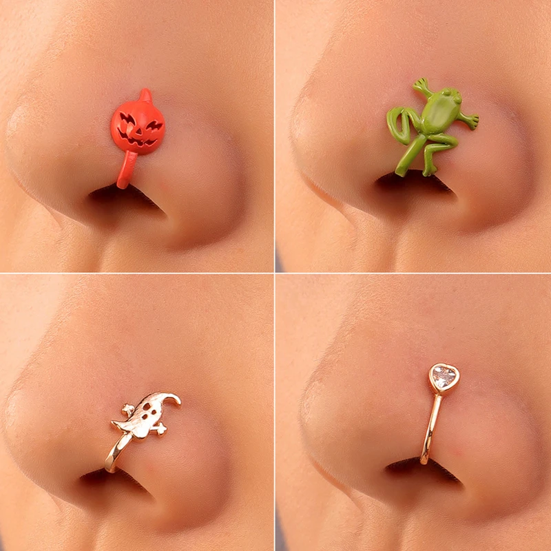 Поддельные Пирсинг нос кольцо Сердце Звезда Корона Лягушка Кролик Т...
