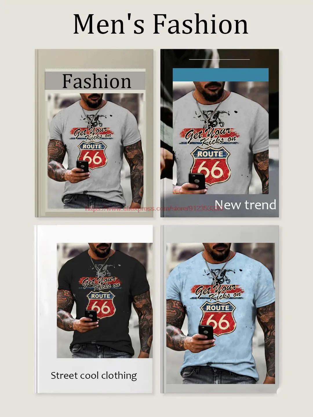 Европейские, американские уличные 66, футболка для мужчин с 3D прин...