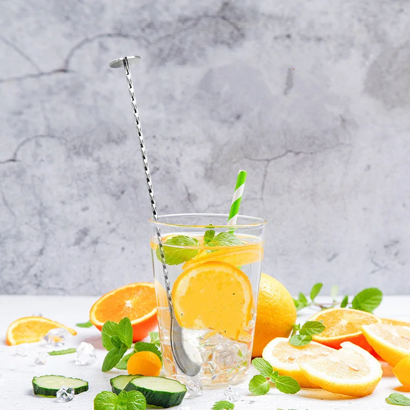 С тупым концом для дробления ингредиентов и оптимальной длиной для легкого захвата пальцев. Изготовлен из нержавеющей стали для превосходной прочности и коррозионной стойкости. Они просты в использовании и чистятся. Подходит для использования дома, баров, пабов и ресторанов. Превосходное дополнение для использования в высоких коктейльных очках. Прочный сверхтолстый витой стержень обеспечивает плотное, но гибкое решение для многослойных коктейлей с точностью и легкостью. Отлично подходит для всех типов смешивания и перемешивания кувшин, карафов и очков. Поскольку ложки длинные, они легко попадают в глубокие стеклянные изделия.