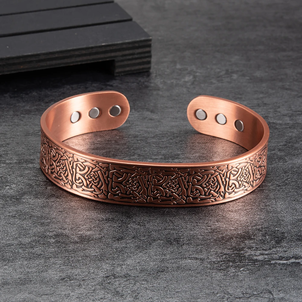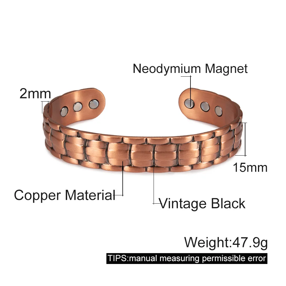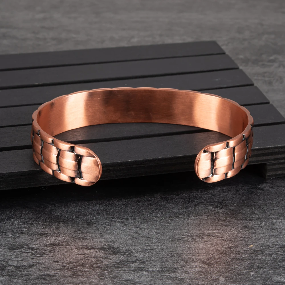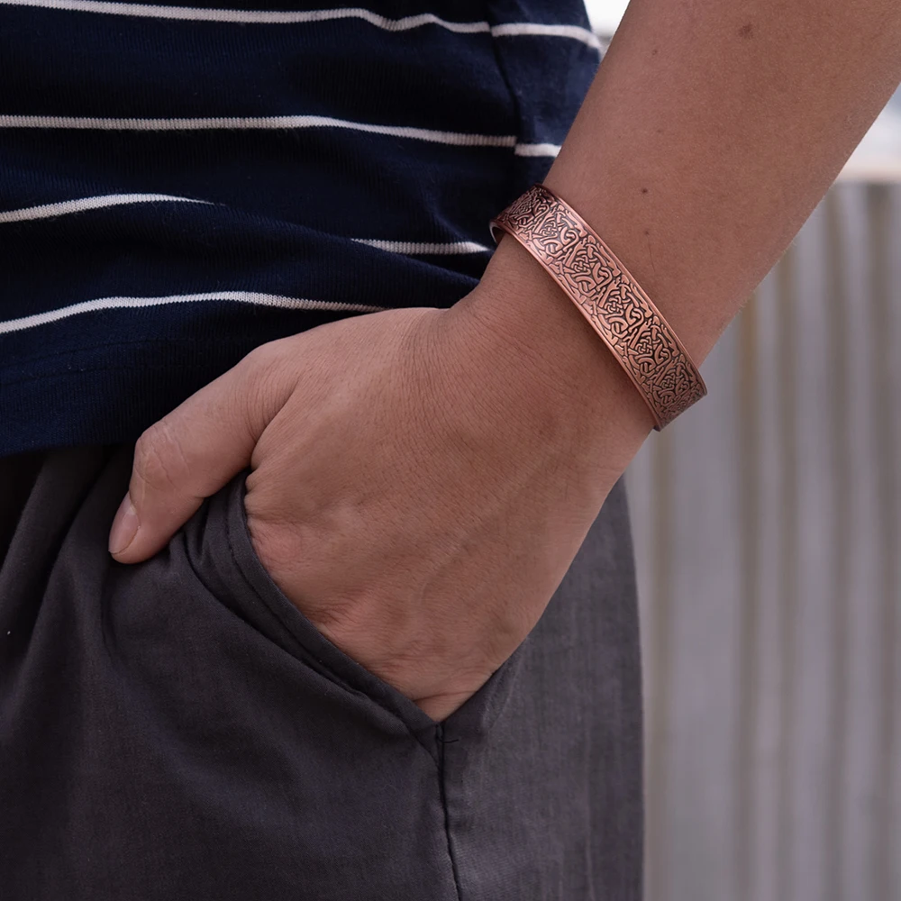 Браслет-манжета мужской из чистой меди, 15 мм