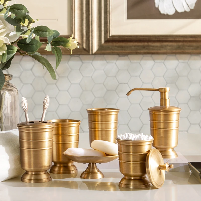 Золотистый медный набор в стиле ретро для ванной комнаты, латунный держатель для зубных щеток в американском стиле, набор для ванной комнаты