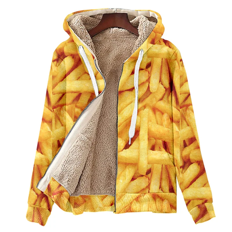 3d print customFries 3D Print Thicken Zipper Hoodies