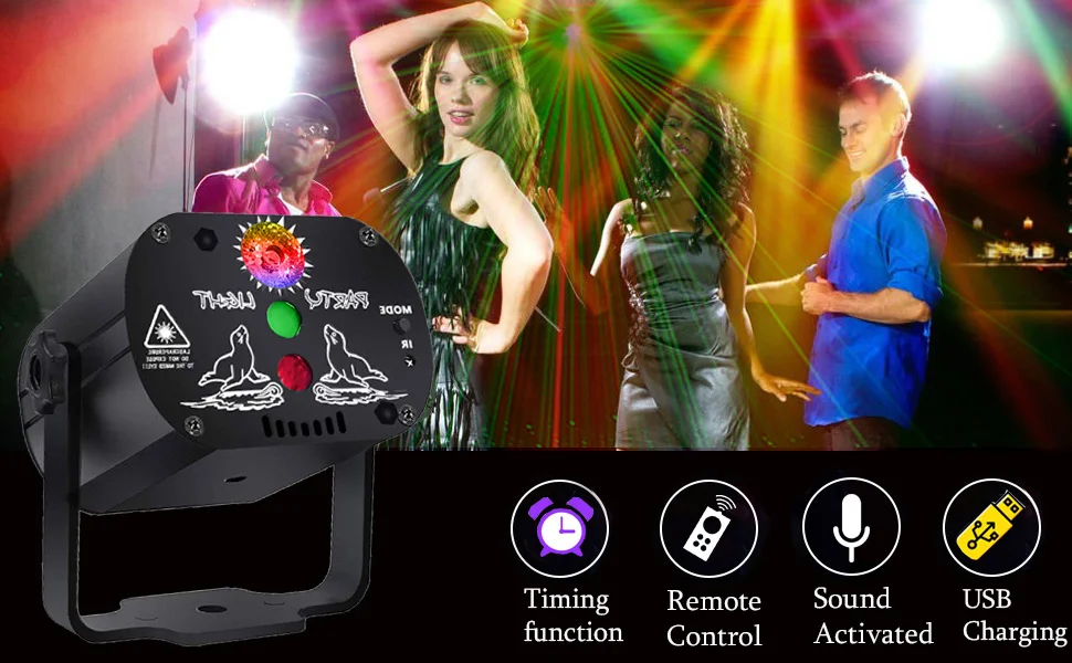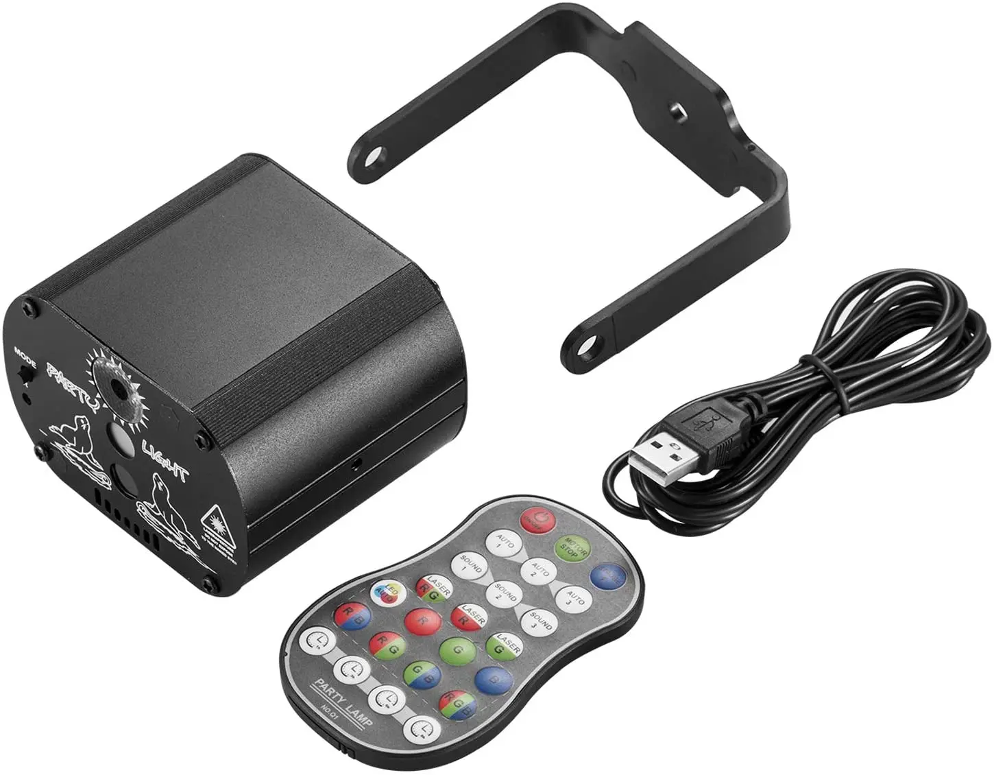 Usb-порт.* ИК-пульт, по сравнению с другими портативными сценическими лампами, наши беспроводные лазерные лампы разработаны с голосовым активированным режимом