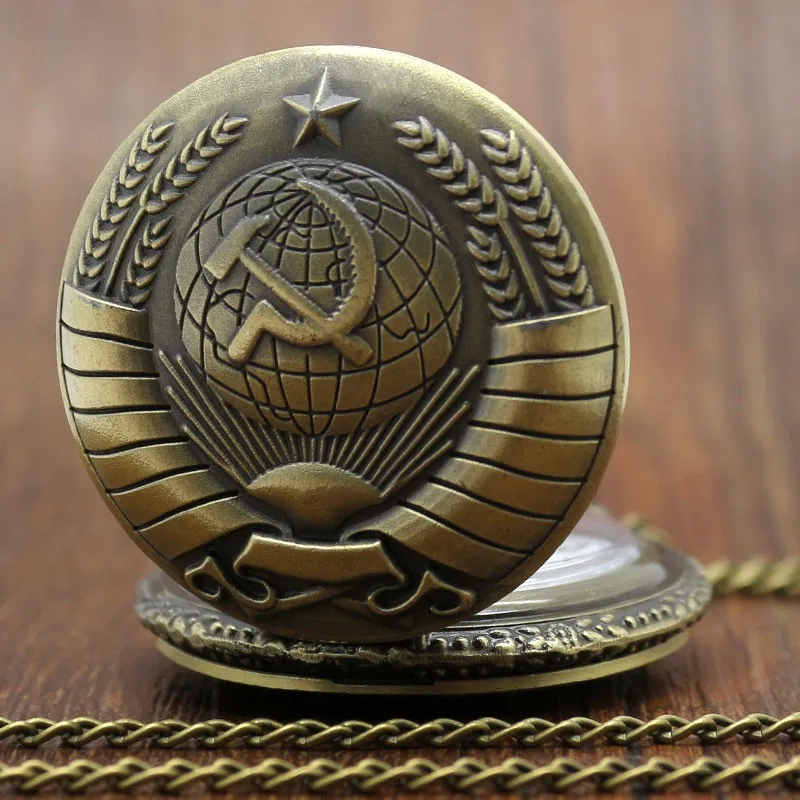 Часы карманные кварцевые с серпом и молотом, бронзовые, в стиле СССР